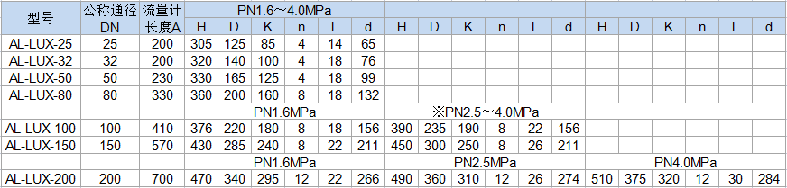 二、旋进旋涡流量计安装尺寸